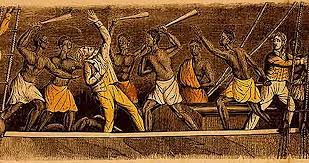 Led by Cinqué, a rice farmer also known as Joseph Cinqué or Sengbe Pieh, unshackled himself. After freeing other captives he then climbed up to the main deck armed himself along with the others, where they killed the ship's cook, Celestino. The captive Africans, led by Pieh, revolt around 4:00am.